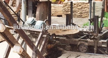 Основная пила разрезает бревна на распиленные куски или доски.